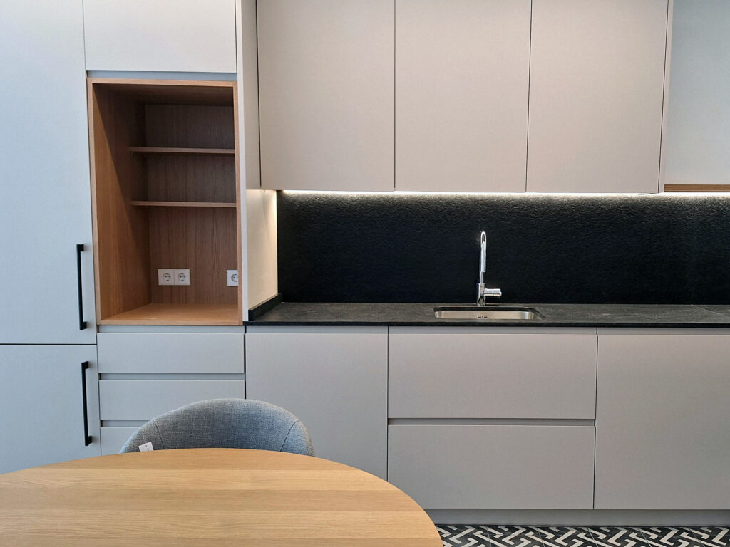 Actualització d’un pis dels anys 70 propietat de la família dels clients. L’objectiu primer era condicionar els espais i actualitzar-ne la imatge. La poca llum i la llargada del passadís van ser un repte en tot moment, intentant aconseguir espais més lluminosos i polivalents.