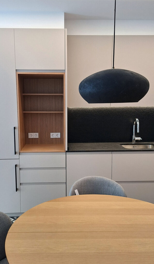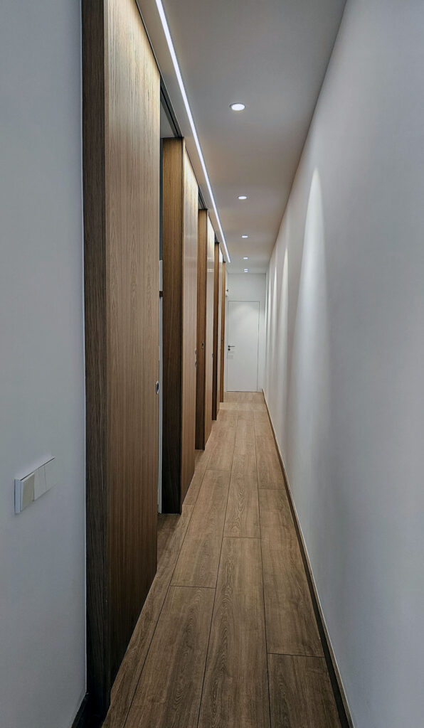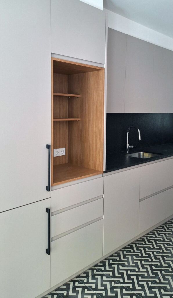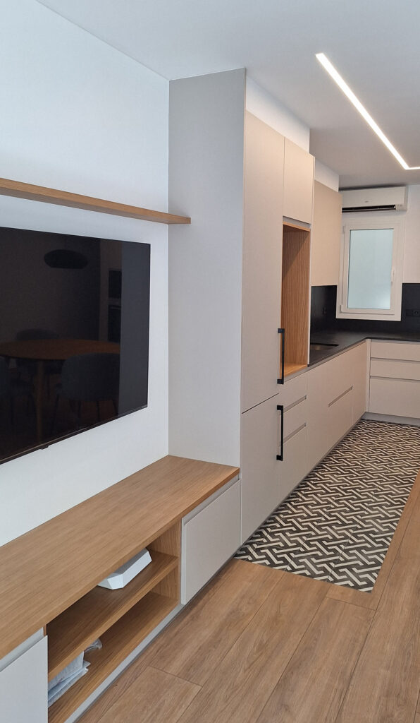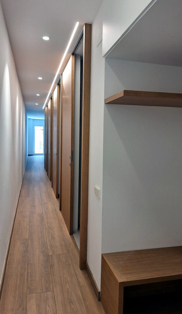 Actualització d’un pis dels anys 70 propietat de la família dels clients. L’objectiu primer era condicionar els espais i actualitzar-ne la imatge. La poca llum i la llargada del passadís van ser un repte en tot moment, intentant aconseguir espais més lluminosos i polivalents.